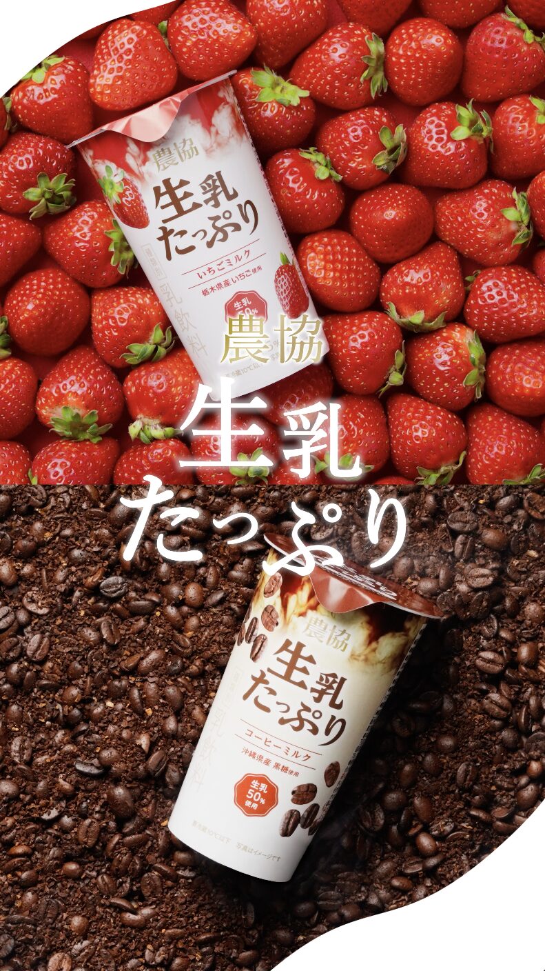 協同乳業株式会社様の「農協 生乳たっぷりコーヒーミルク/いちごミルク」を撮影させていただきました。